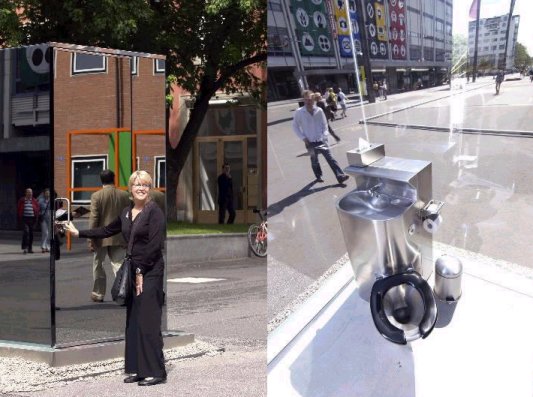 거울형태의 화장실이죠...안에선 밖이 보이고 밖에선 거울